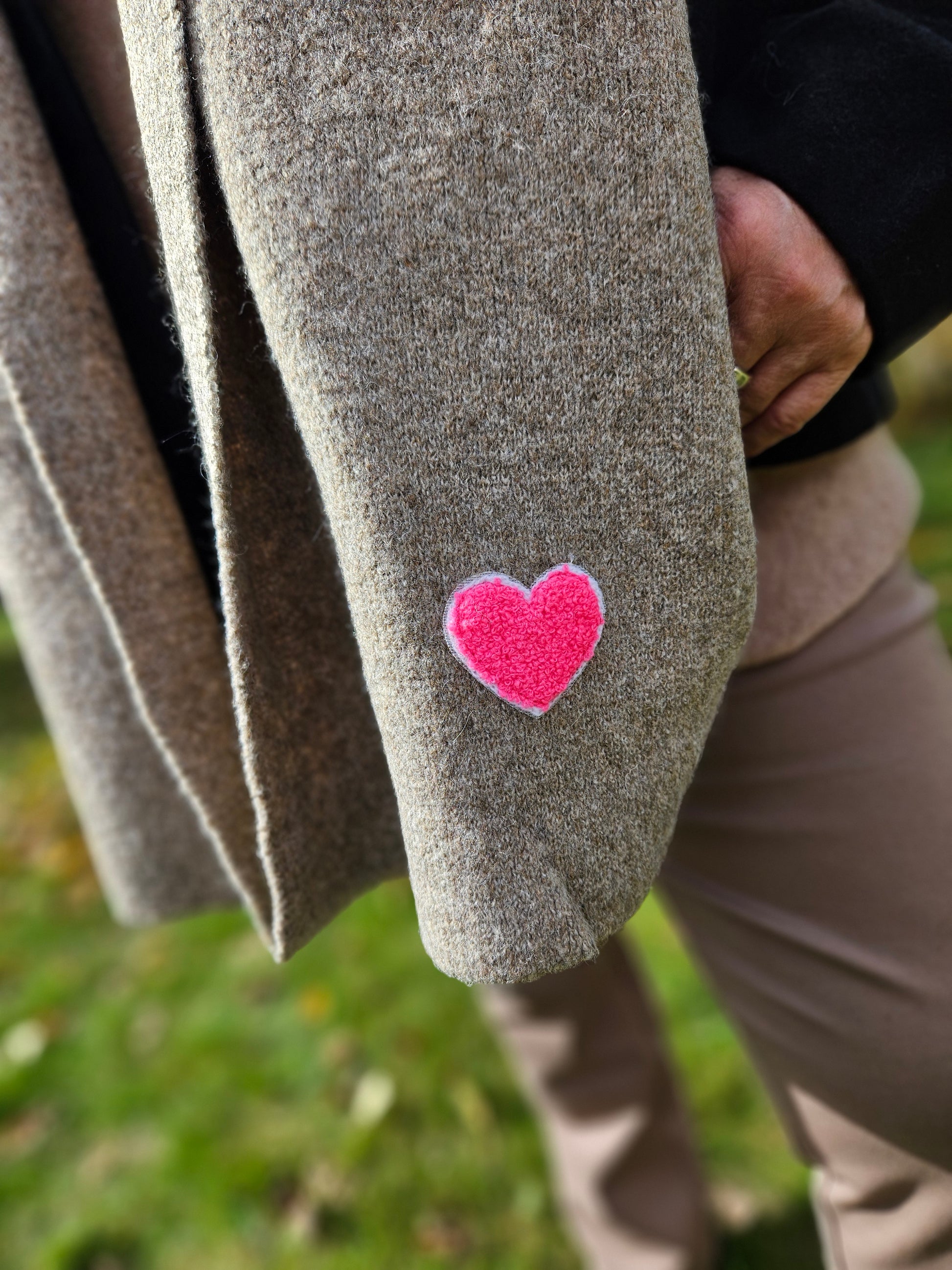Der Strickschal Wollmix "Uni & Herz" kombiniert kuschelige Wärme mit liebevollem Herz-Detail – perfekt für stilvolle Akzente an kalten Tagen.